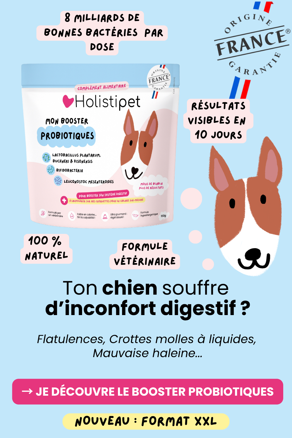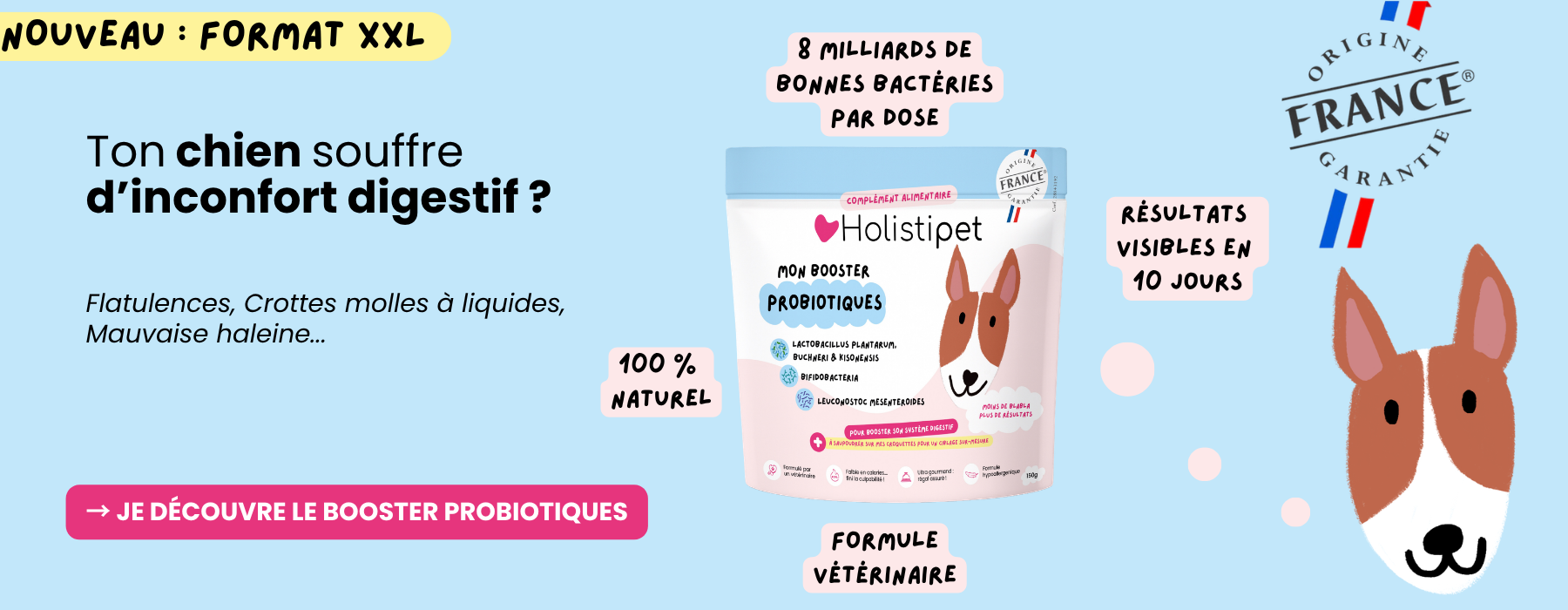 Découvrez comment nos probiotiques naturels transforment le quotidien de votre toutou avec des ingrédients 100% français.